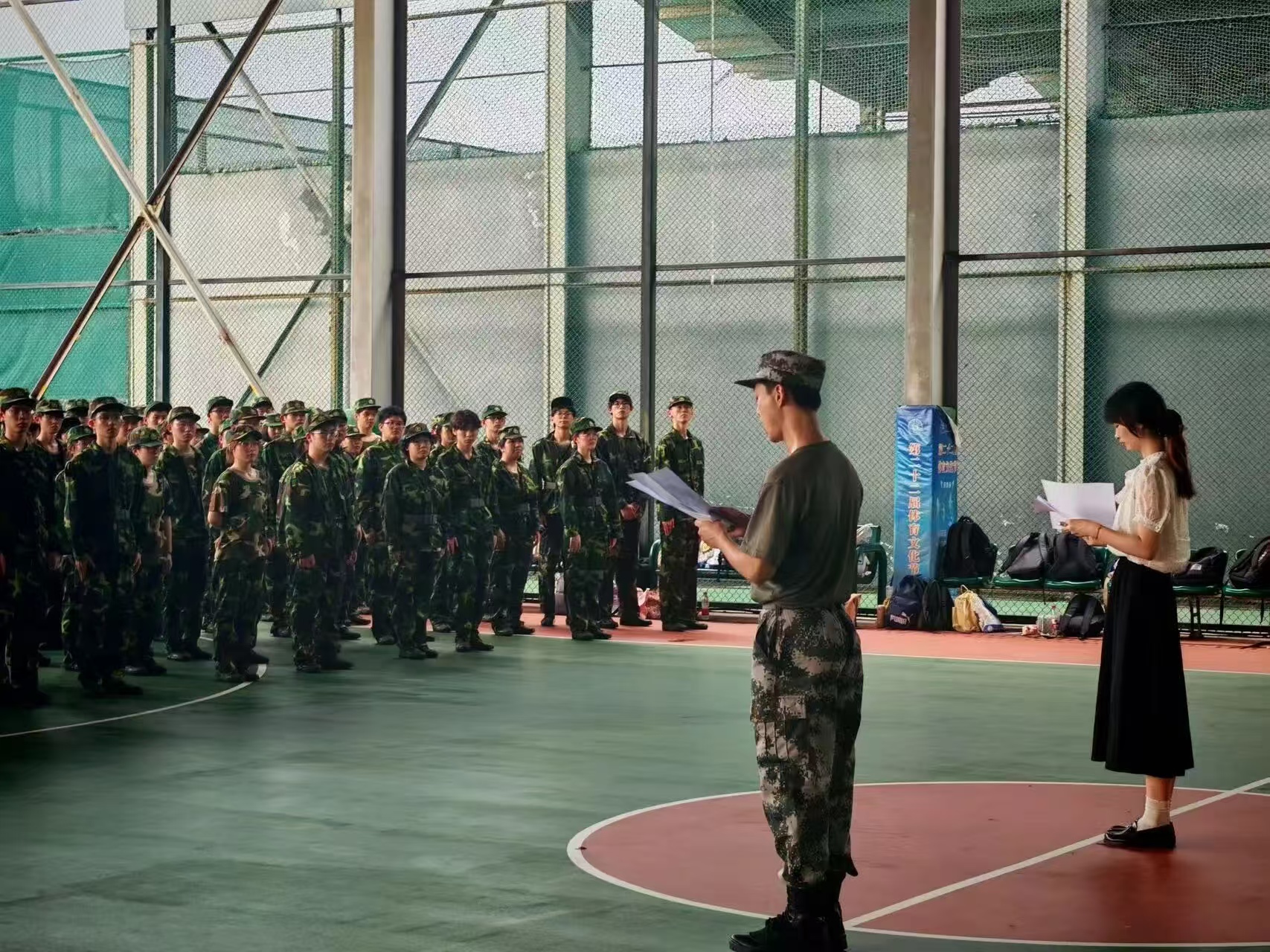教官代表迈着铿锵的步伐,脸庞上写满坚毅:“接下来的日子,我们会是严格的教官,也会是你们的战友。汗水会浸湿衣衫,但笑容会更加灿烂;口号会喊到沙哑,但信念会更加坚定。”