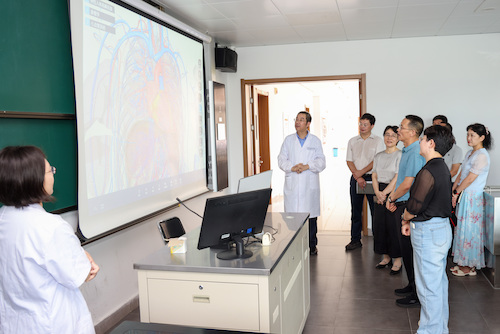 郭东风书记先后来到缅怀广场、系统解剖实验室、病理生理学实验室等教学科研场所,检查教育教学和学术科研设施设备运行情况,听取学院课程思政建设情况,亲切看望学院高层次人才代表。郭东风指出,基础医学院要带头认真落实学校暑期工作会议精神,坚定争创“双一流”目标,充分依托前沿科学中心先进仪器设备的资源优势,聚焦学术前沿,不断加强有组织科研,细致做好高层次人才服务保障,努力产出更多标志性高水平成果,在不断增进人民健康福祉上加强探索、作出贡献。他强调,医学专业和学科是课程思政的重要载体,要持续推动思政课程与课程思政同向同行,有组织地加强思政精课培育,加强家校社思政教育一体化探索,更好教育引导青年学生敬畏生命、常怀感恩,努力培养更多崇尚真善美、德智体美劳全面发展的时代新人。
