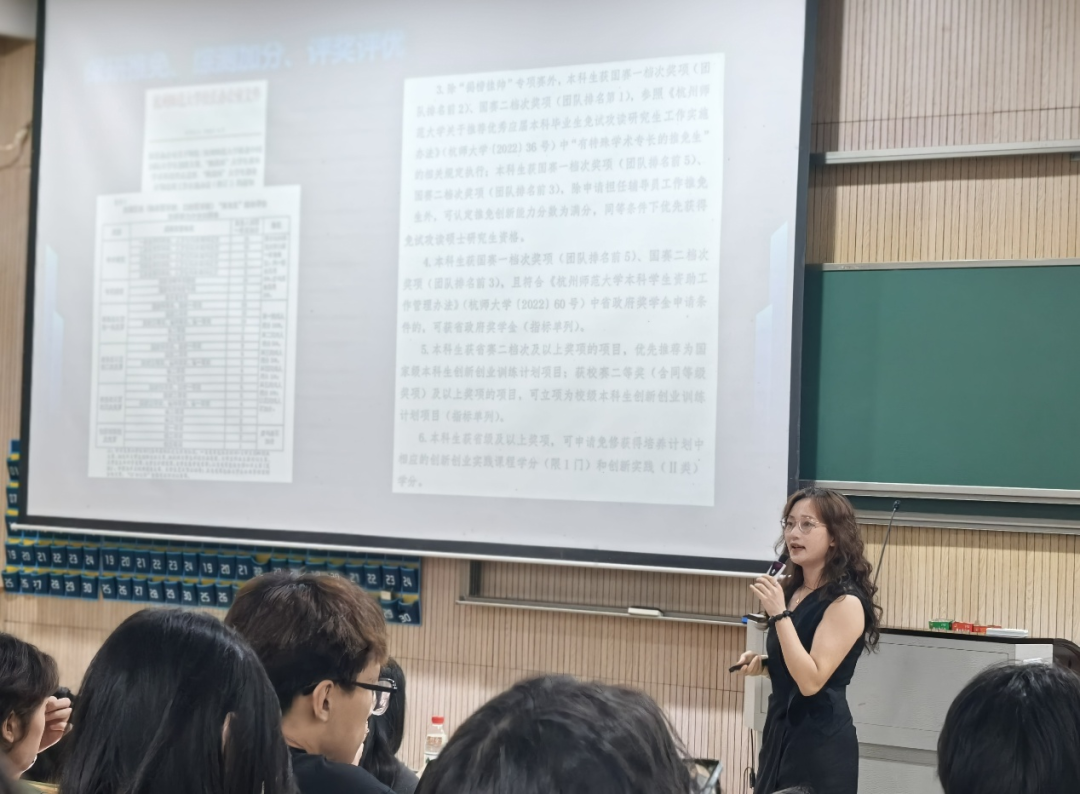 张睿学姐则从新生视角出发,梳理杭师大科研项目类型及差异,详解加入实验室的四大途径,推荐文献检索与阅读工具,认真分析科研利弊,用“科研如养花”的比喻鼓励新生脚踏实地开启科研之路。