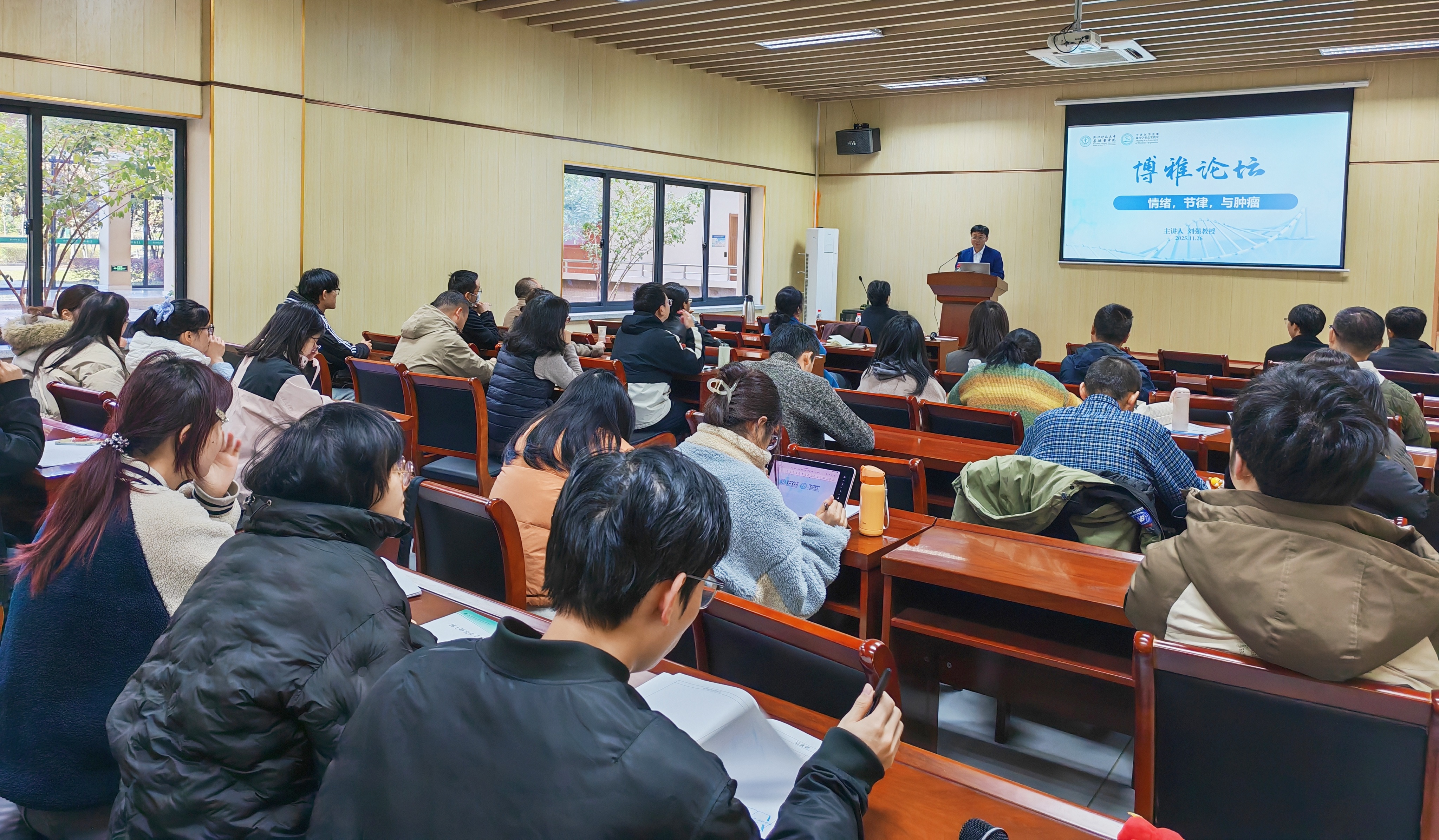 11月26日,大连医科大学刘强教授应邀做客基础医学院“博雅论坛”,为师生带来题为《情绪、节律与肿瘤》的精彩学术报告。此次报告由基础医学院院长刘喆教授主持,学院部分师生参加了此次活动。