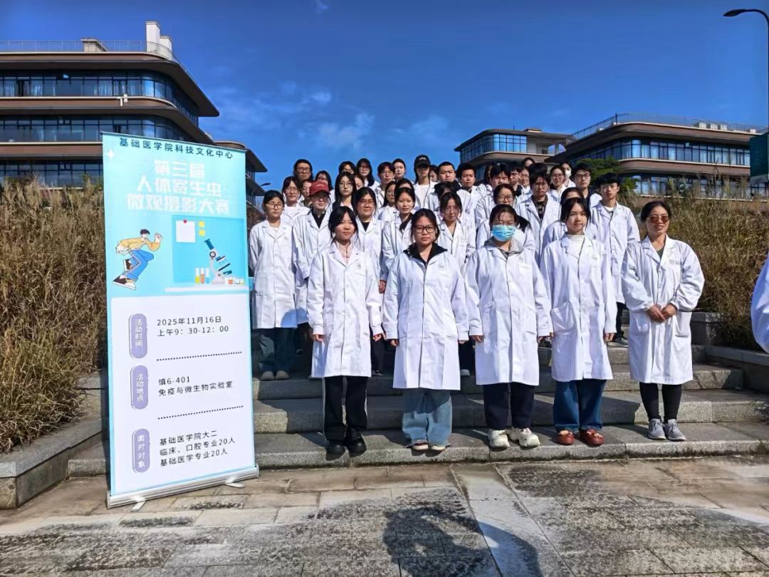 2025年11月16日,以“以镜载虫,美识并举”为主题的第三届人体寄生虫微观摄影大赛,在慎园6号楼407实验室圆满落幕。基础医学院各专业40余名学生积极参赛。活动旨在引导同学们深入探索人体寄生虫的奥秘,将实验技能与美学创意深度融合,激发对生命科学的探索热情。