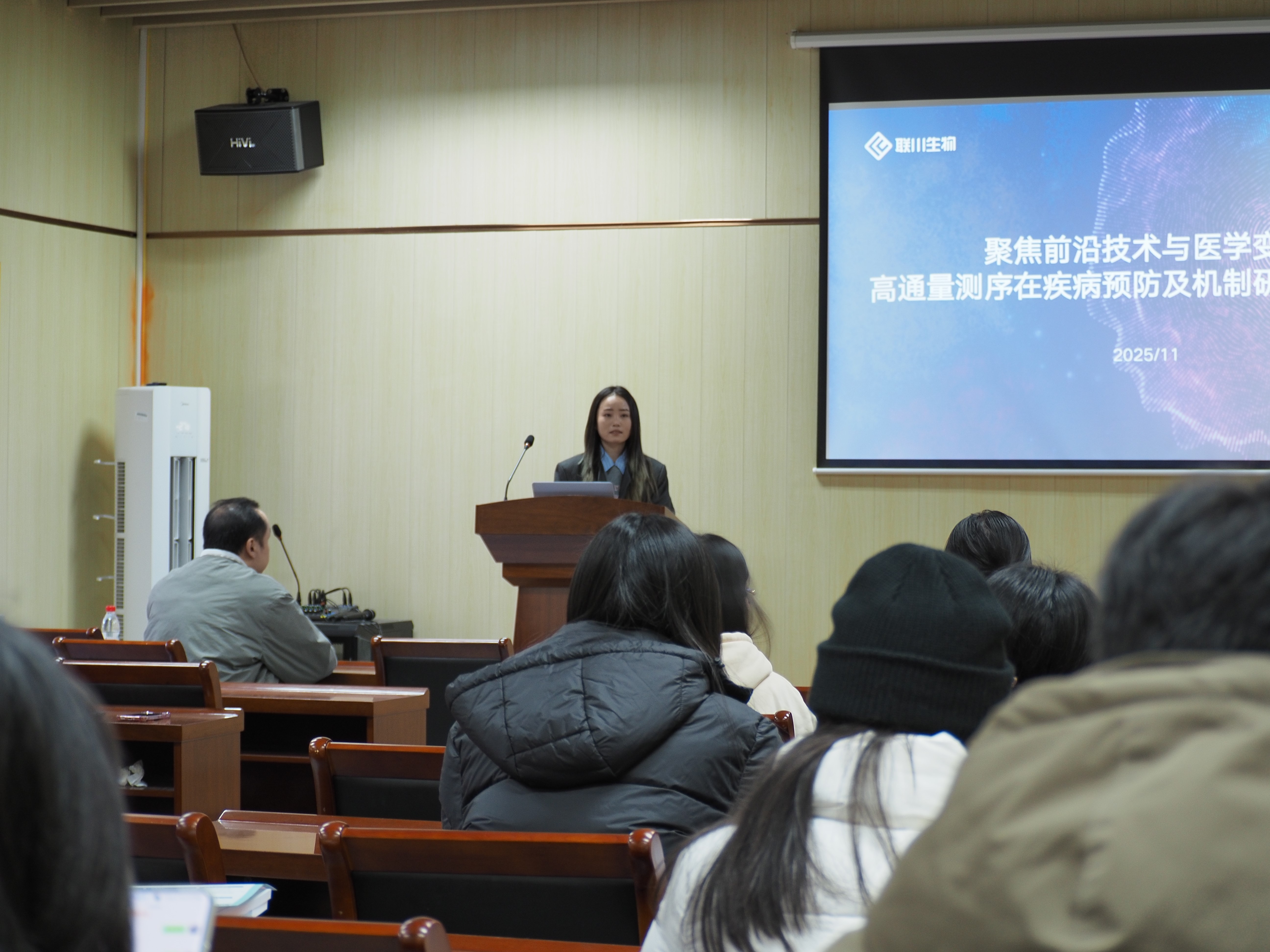 2025年11月28日上午9时,我院勤慎研讲第十讲于慎园11号楼114室顺利举办,本次讲座由联川生物带来主题为“2025联川讲座——高通量多组学技术驱动医学研究新范式”的专题讲座。讲座特邀宋贝贝、叶祯皓两位老师主讲,旨在分享多组学技术前沿动态,探讨其在医学研究中的创新应用,并为科研工作者提供技术交流与合作的平台。