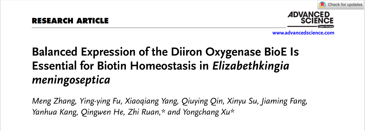 2025 年 12 月 12 日,基础医学院徐勇昌副教授联合浙江大学医学院附属邵逸夫医院阮陟研究员团队,在《Advanced Science》发表题为 “Balanced Expression of the Diiron Oxygenase BioE Is Essential for Biotin Homeostasis in Elizabethkingia meningoseptica” 的研究论文。该研究通过系统发育分析发现,BioE在各类细菌中分布广泛,即便在缺乏同源阻遏因子 BioL 的专性细胞内衣原体中亦有存在。深入研究揭示,脑膜败血伊丽莎白菌的 EmBioE 以同源二聚体形式存在,可识别酰基-ACP/CoA;而鹦鹉热衣原体(Chlamydia psittaci)的 CpBioE 为单体,仅特异性结合酰基-ACP。在伊丽莎白菌中,BioL 的缺失会导致 EmBioE 途径的失控,进而耗尽长链脂肪酸及 ATP/SAM 代谢池,这是其产生生物素营养缺陷的关键诱因。该研究证实,BioE 的平衡表达对细菌存活至关重要,为多重耐药病原体的抗菌药物研发提供了全新靶点。