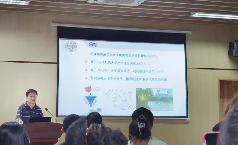 2025年9月27日下午3:30,南开大学元素有机化学国家重点实验室、农药国家工程研究中心玄元虎教授应邀做客杭州师范大学基础医学院“勤慎研讲”研究生学术论坛,在仓前校区慎园11-114会议室作了题为“靶标感病基因的新农药创制”的学术报告。本次报告由徐晓玲老师主持,学院部分师生参加了此次报告会。报告伊始,玄元虎教授以全球粮食安全与农业可...