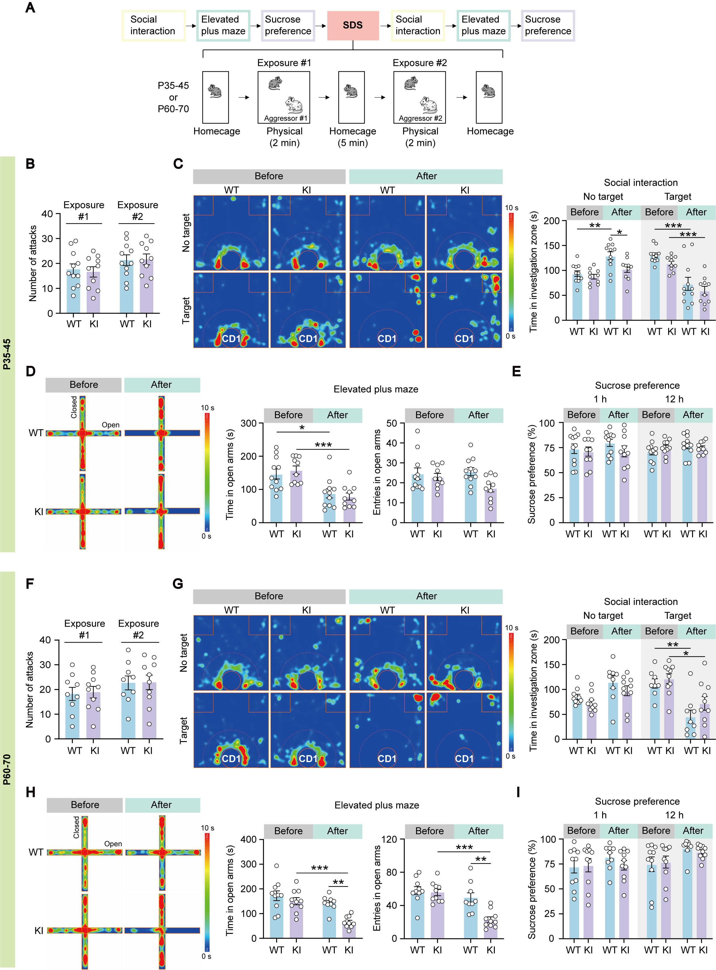 图3:成年突变小鼠对急性社交挫败应激诱导的焦虑表现出更高的易感性