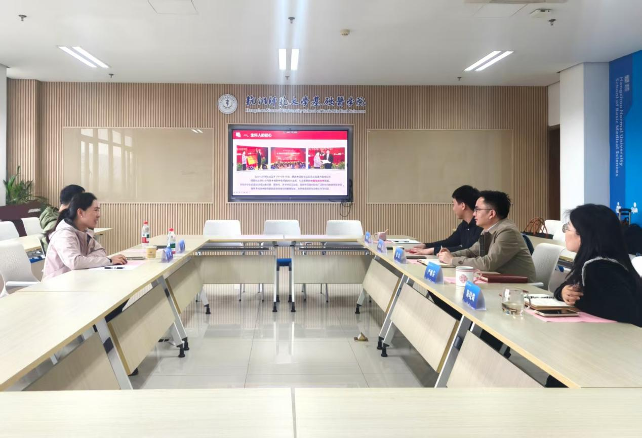 座谈会上,张凯首先代表基础医学院对许珊一行的到来表示欢迎,并详细介绍了学院的发展概况、学科建设、师资力量及人才培养特色。随后,潘辰豪结合自身在北中医生科院学习和在杭师大基础医学院工作的经历,全面分享了学院在学生思想引领、日常管理、成长服务等方面的工作举措与实践经验。